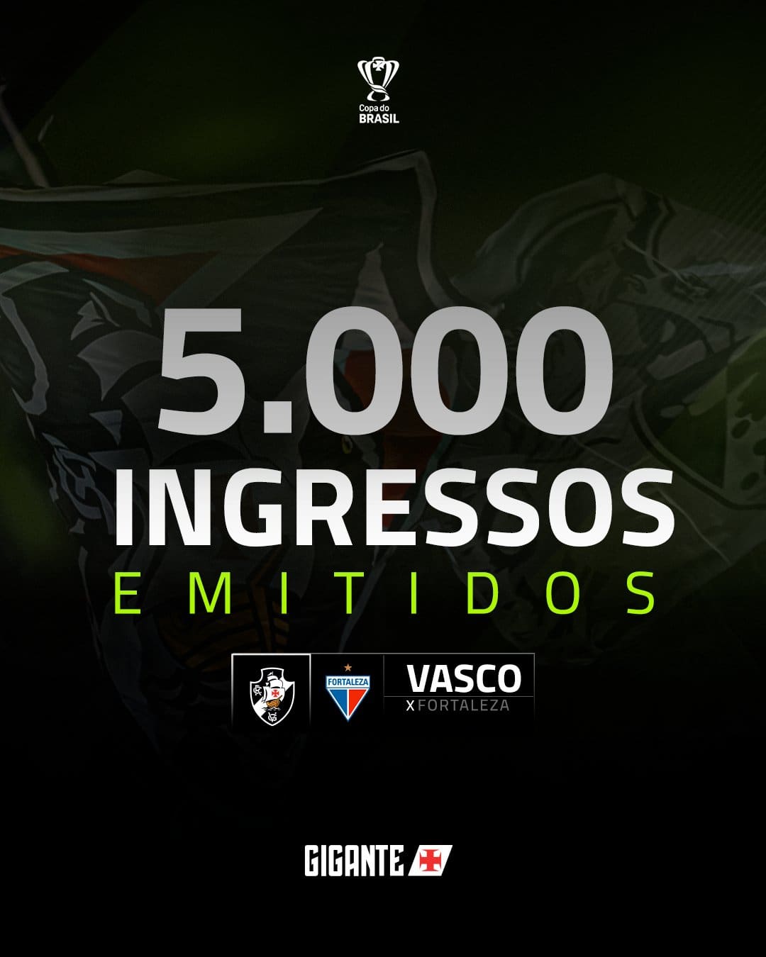 Os primeiros 5.000 ingressos foram disponibilizados para a partida entre VASCO e Fortaleza 💢