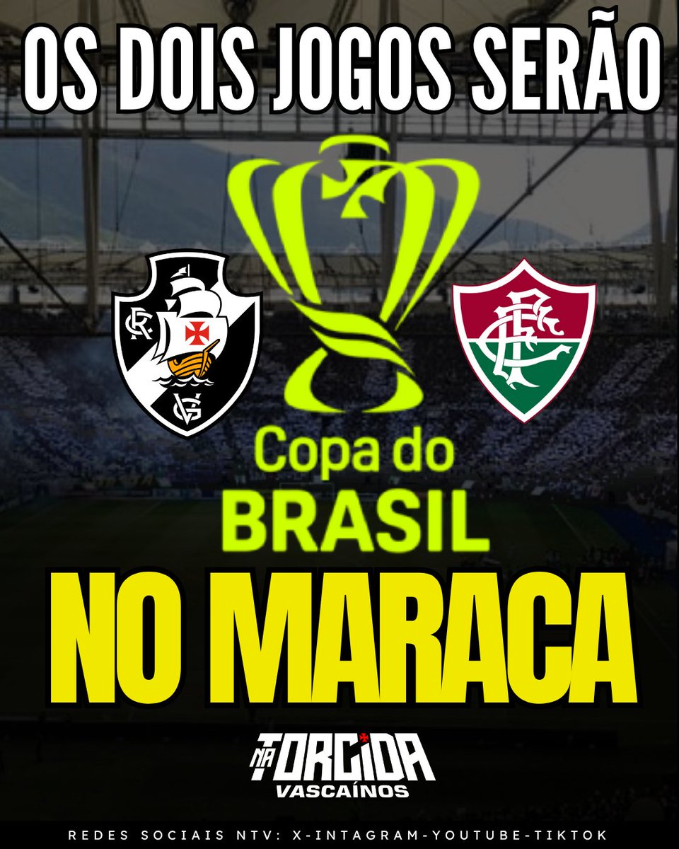 Recebemos a confirmação de que os duelos das semifinais da Copa do Brasil entre Vasco e Fluminense ocorrerão no Maracanã.