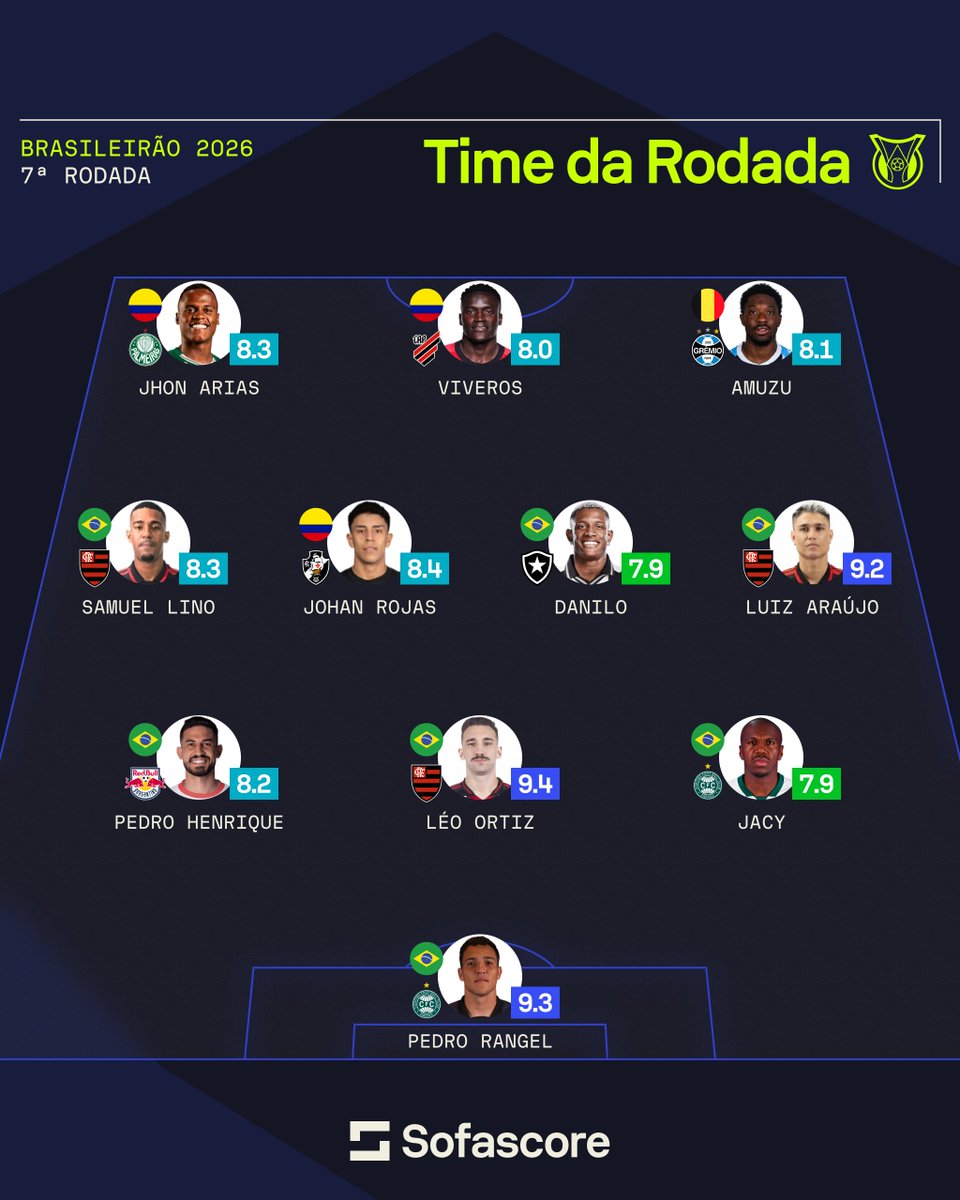 Johan Rojas foi incluído na seleção da 7ª rodada do Brasileirão pela Sofascore.