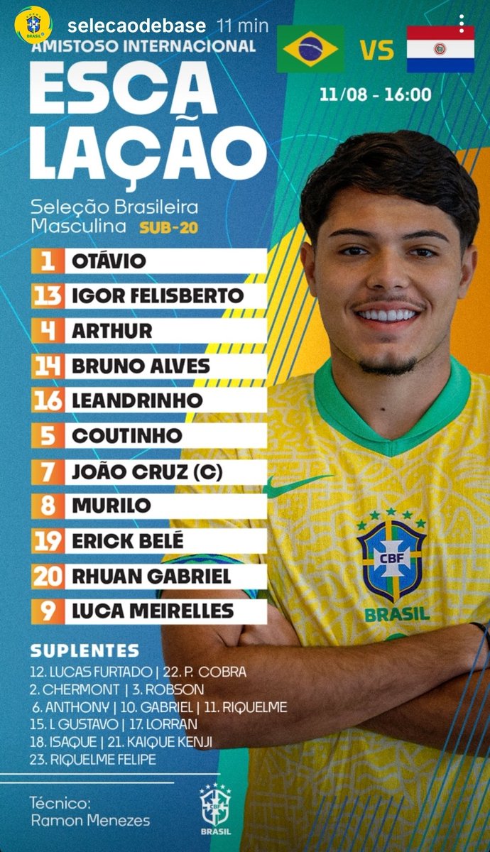 Pelo segundo jogo consecutivo, o lateral-esquerdo Leandrinho garantiu seu lugar como titular da Seleção Sub-20. Assim como ocorreu no primeiro amistoso contra o Paraguai, o atleta do Vasco começará a partida às 16h. O zagueiro Luiz Gustavo ficará como opção no banco. Lembre-se: não haverá transmissão do jogo!