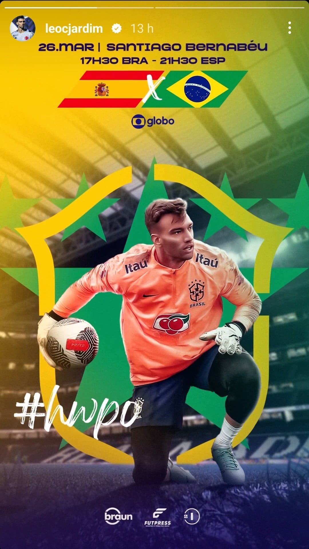 No Instagram, o jogador Léo Jardim compartilhou: