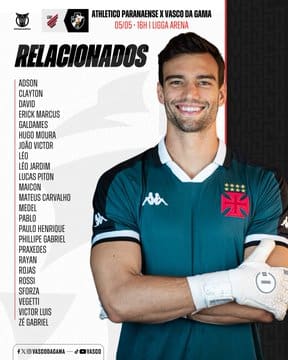 • O arqueiro Keiller apresentou uma indisposição no joelho direito e não estará disponível para o duelo diante do Athletico-PR.