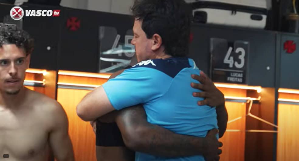Loide e Dinis se abraçaram após a partida contra o Operário — Foto: Vasco TV