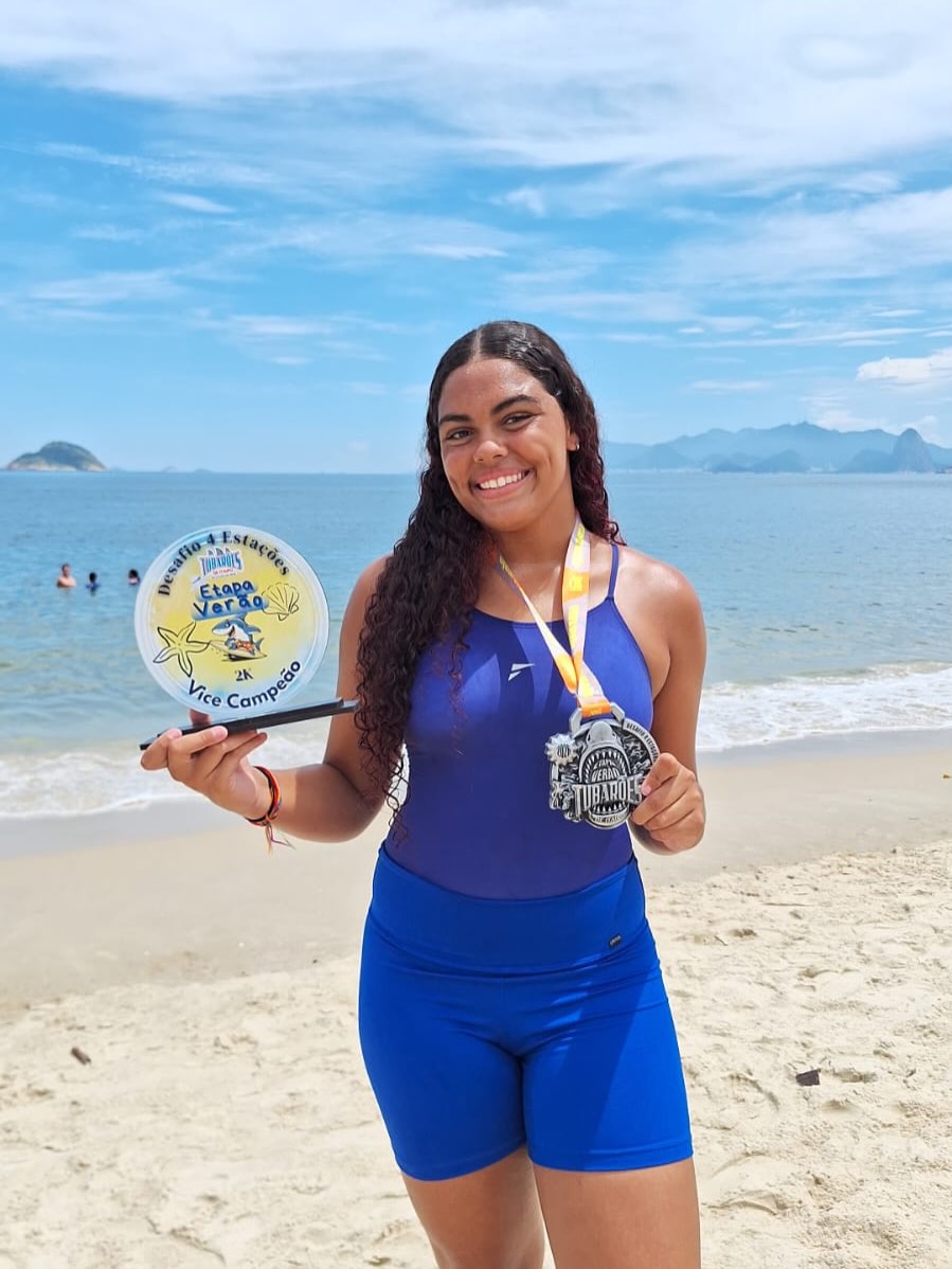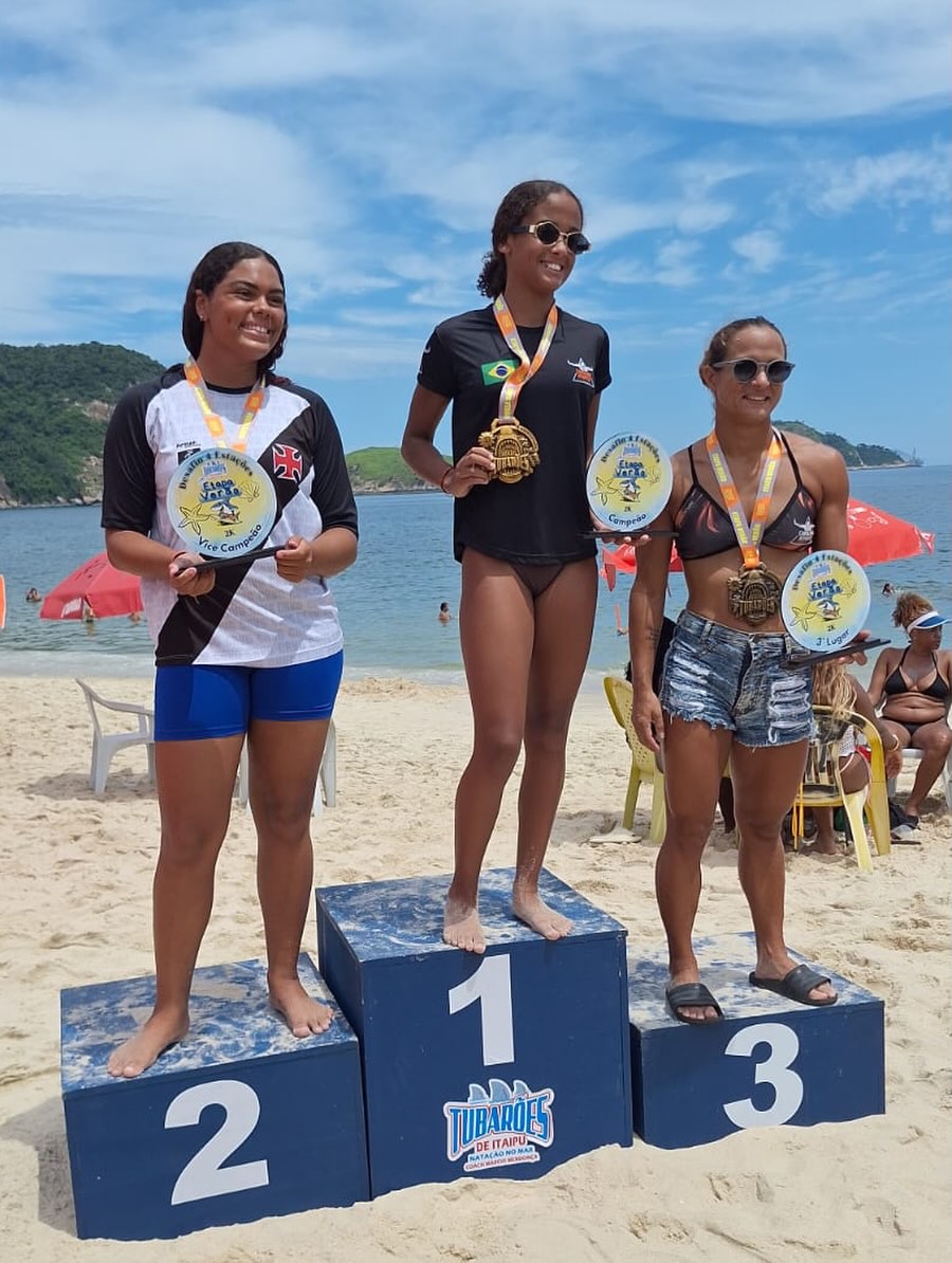 A nadadora Luiza Loureiro participou da competição “Tubarões de Itaipu”, realizada na Praia de Itaipu, em Niterói.