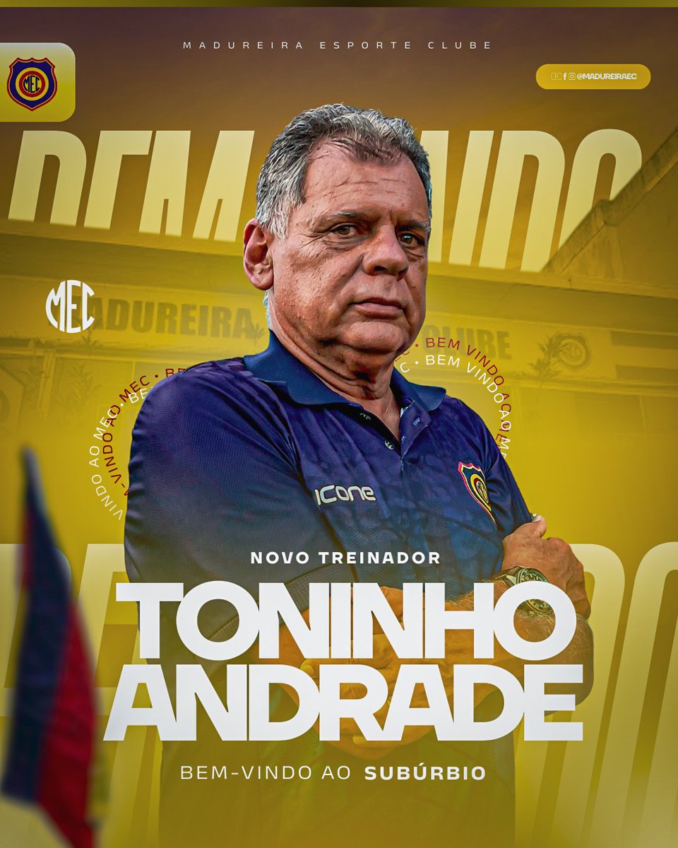 Além disso, o Madureira confirmou o retorno do treinador Toninho Andrade, que havia deixado o clube em 2021. Esta será sua quarta temporada à frente da equipe, e ele será acompanhado pelo auxiliar Marcus Dantas.