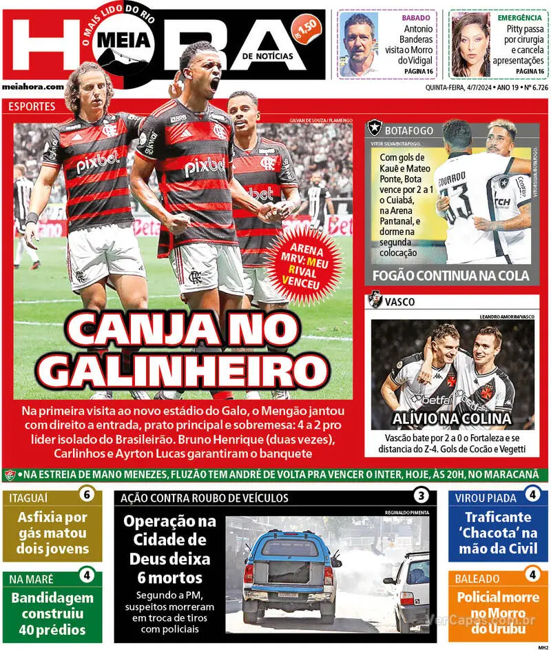 Jornais enfatizam a vitória do Vasco sobre o Fortaleza por 2 a 0. Confira: