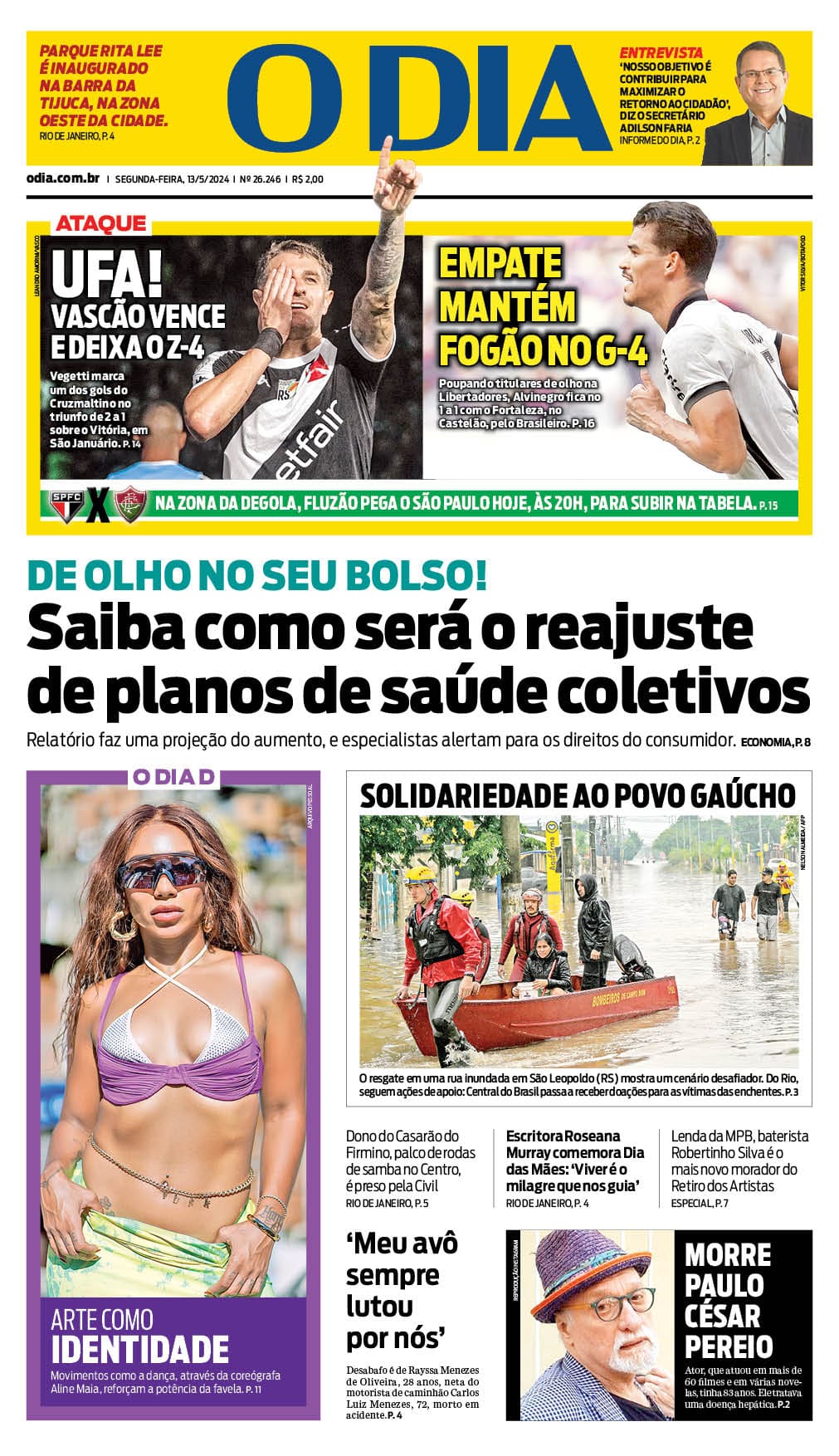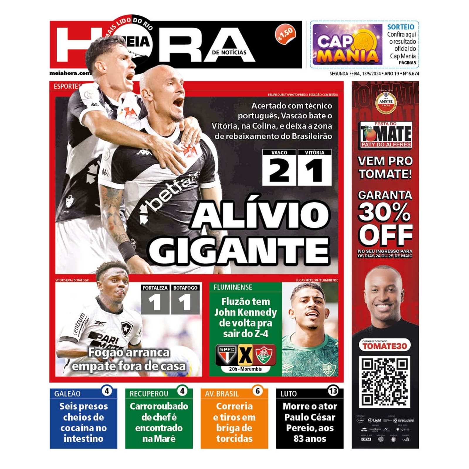 Confira as principais notícias nos jornais sobre a vitória do Vasco por 2 a 1 contra o Vitória.