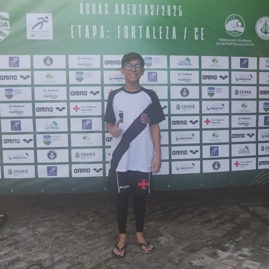 Hoje foi um dia muito especial! Participei da etapa brasileira de águas abertas em Fortaleza e, com apenas 12 anos, conquistei o título de Vice-Campeão Brasileiro na prova de 5 km. Também fiquei em 3º lugar no Sul-Americano de Clubes. Aqui, defendi meu clube Vasco da Gama. @netvasco. Agradeço aos meus técnicos do Vasco, @fabiosampaio28 e @lcvieira01, ao meu time de treinamento de natação @time.felipepereira, e minha equipe multidisciplinar. Obrigado a todos @personal_maxcardoso08 @studiocorepersonal @studiotatiteles @cordeiro8209 @denise_decoster @acertacoluna @liamarcia.psi @acarolprestes @pedrobraga.nutri