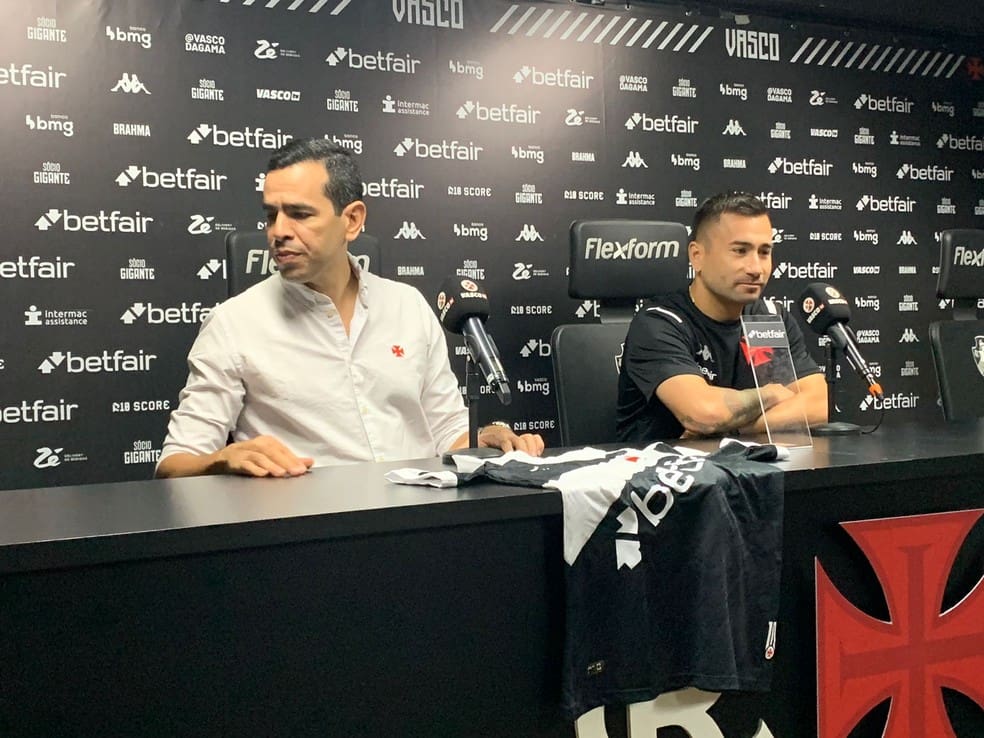 O diretor executivo do Vasco, Marcelo Sant’anna, deu uma entrevista coletiva nesta quarta-feira ao lado de Jean David, o quinto reforço do clube nesta temporada.
