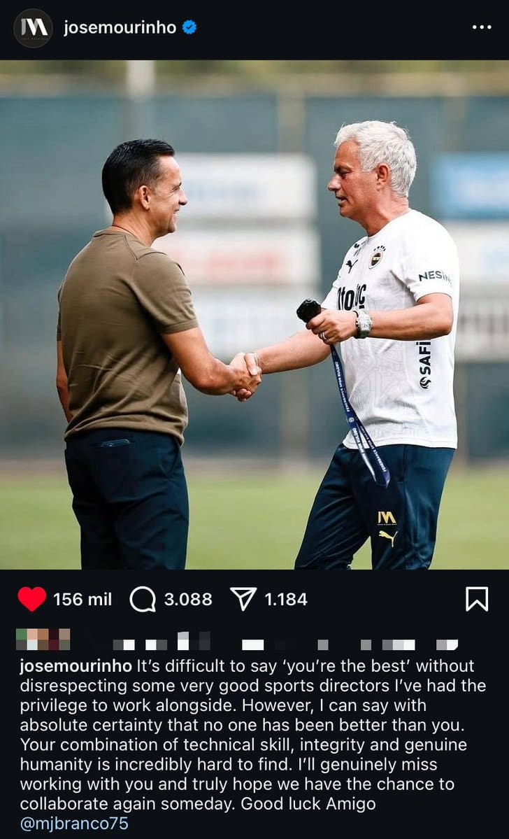 Até mesmo uma postagem de despedida vinda de ninguém menos que José Mourinho, um dos treinadores mais vitoriosos do futebol (veja a tradução da mensagem abaixo).