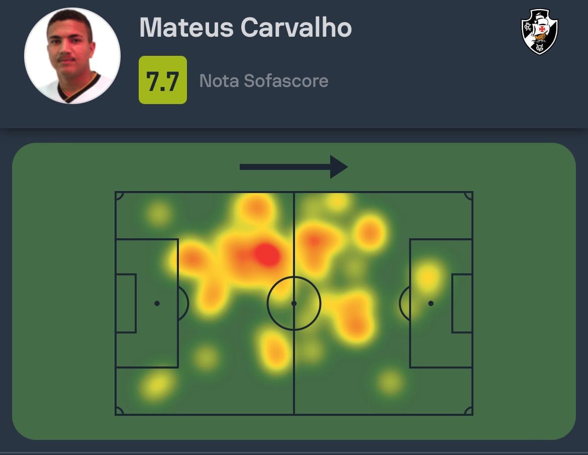 O desempenho de Mateus Carvalho no confronto Vasco 2-1 Grêmio: