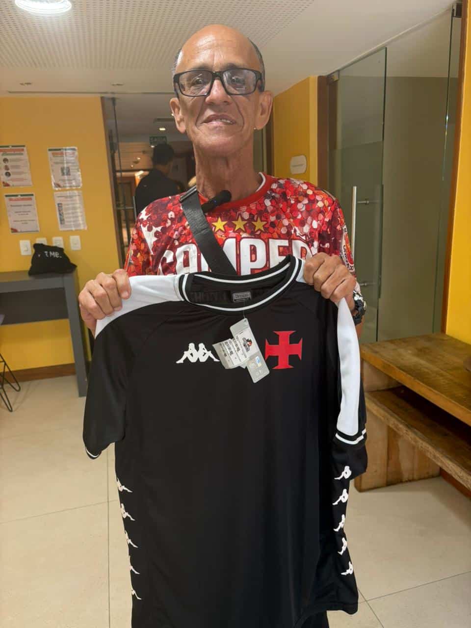 Mestre Ciça, da escola de samba Viradouro, foi presenteado com uma camisa do Vasco.