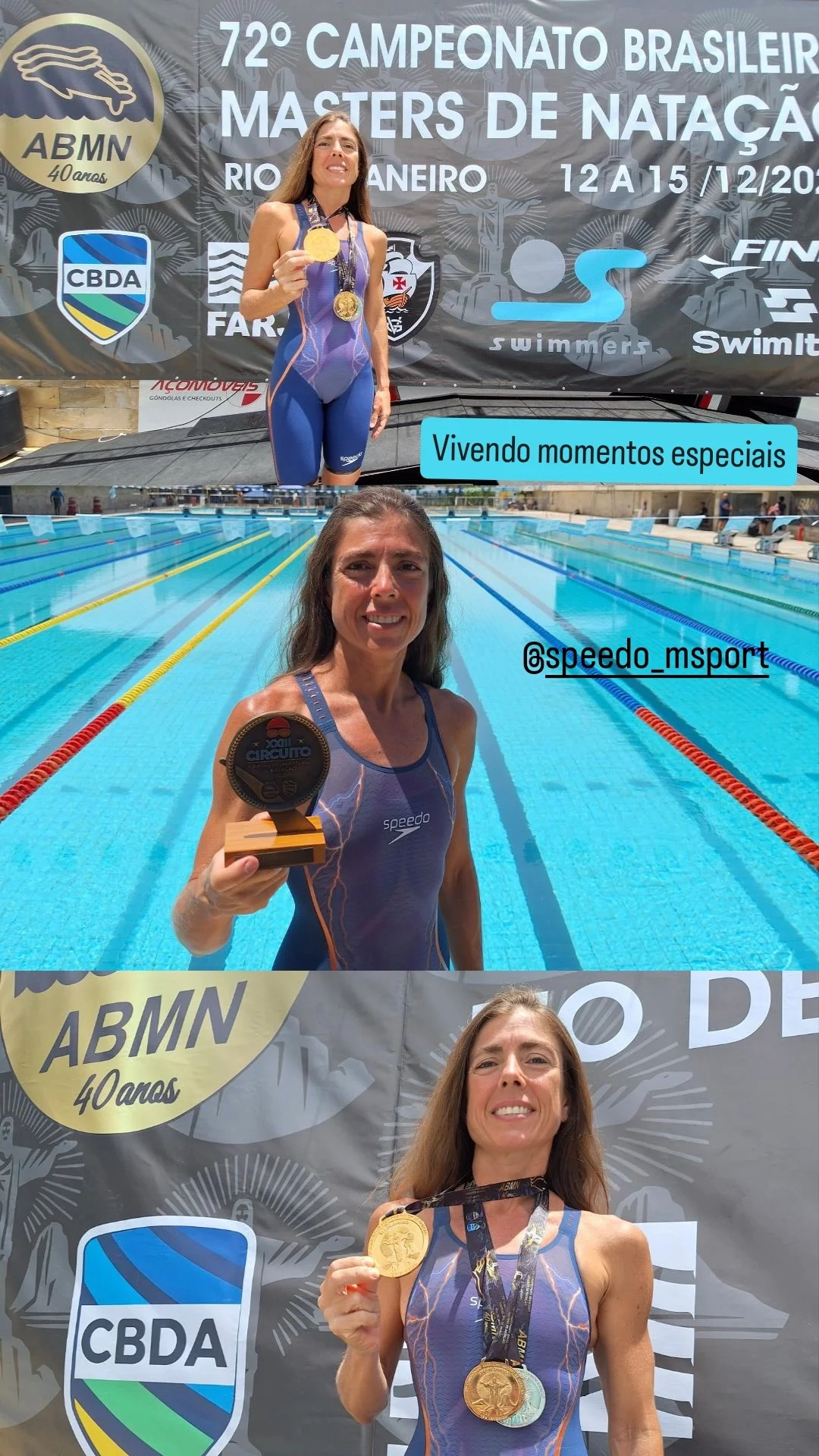 Natação: Gloria Raizer conquista medalhas de ouro, prata e bronze no Campeonato Brasileiro Master
