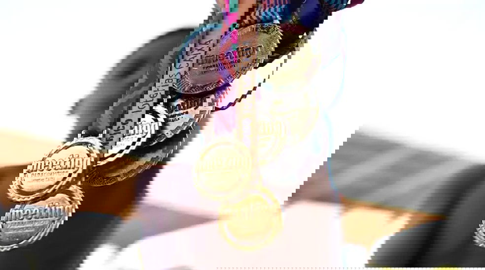 Luan Felipe com medalhas conquistadas no Meeting Paralímpico do Rio de Janeiro — Foto: André Durão/CPB