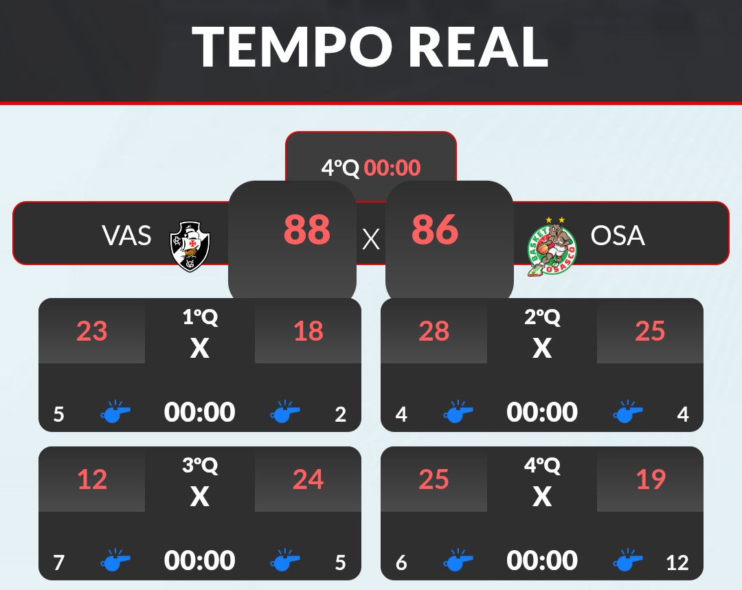 Vasco vence Osasco por 88 a 86 em partida equilibrada no NBB.