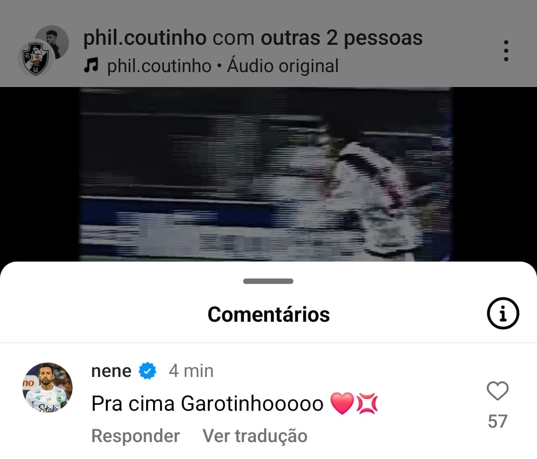 Nenê deixa sua observação na postagem feita por Philippe Coutinho: