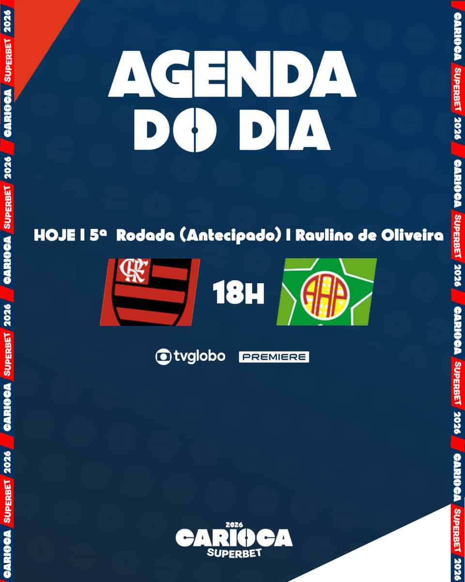 MeuVasco›Últimas notícias›Neste domingo, em partida antecipada da 5ª rodada, Portuguesa e… Neste domingo, em partida antecipada da 5ª rodada, Portuguesa e Flamengo dão início ao Carioca. Portuguesa e Urubu abrem o Campeonato Carioca neste domingo, em partida antecipada da 5ª rodada. domingo, 11/01/2026 às 12:26 CHEGOU O DIA! Em partida antecipada da 5ª rodada, Flamengo e Portuguesa iniciam hoje o #CariocaSuperbet26! Qual é a sua previsão? Fonte: X do Campeonato Carioca Receba notícias do Vasco Cadastre seu e-mail para receber os principais destaques do Vasco. Seu e-mail Quero receber Você pode cancelar a inscrição quando quiser.