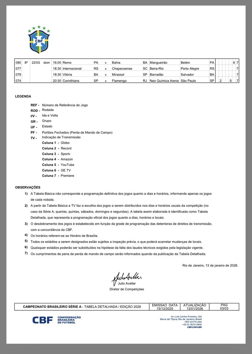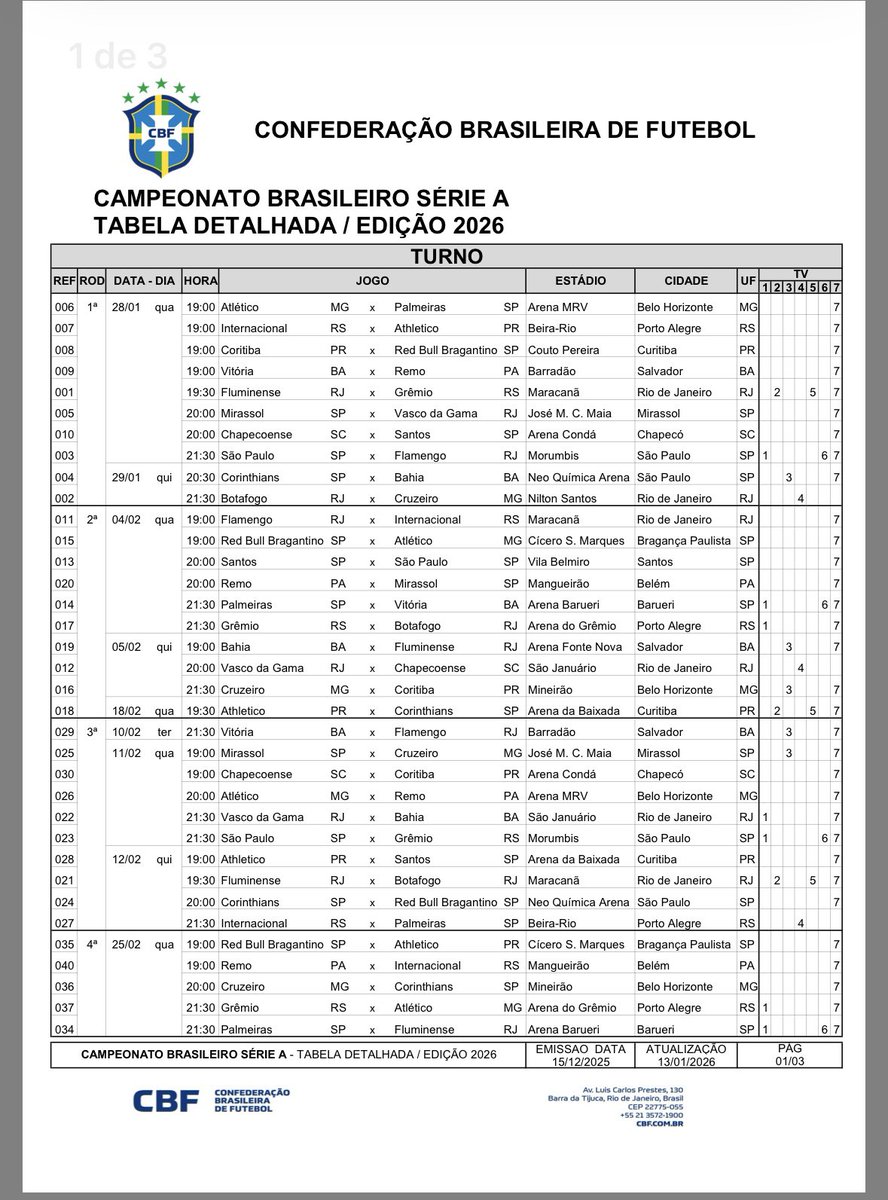 ✅️ | A CBF divulgou as datas e horários das primeiras oito rodadas do Campeonato Brasileiro.