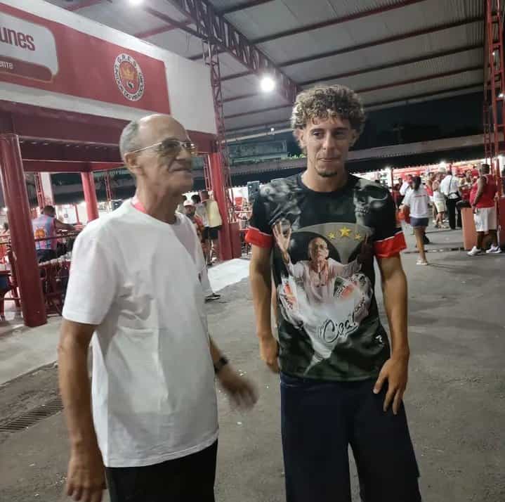 Carlos A. Fonseca ⭐️⭐️⭐️ @eucarlosfonseca Simplesmente o Nuno Moreira apareceu de surpresa no ensaio da Viradouro. Ele até presenteou o Mestre Ciça com um item especial, destacando o enredo vascaíno.