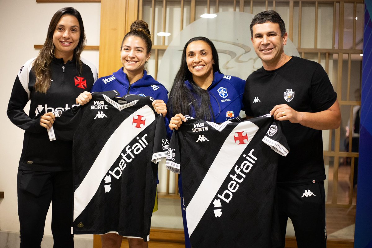 No mesmo hotel onde a Seleção Feminina está hospedada em Quito, Vasco faz homenagem a Marta e Angelina.