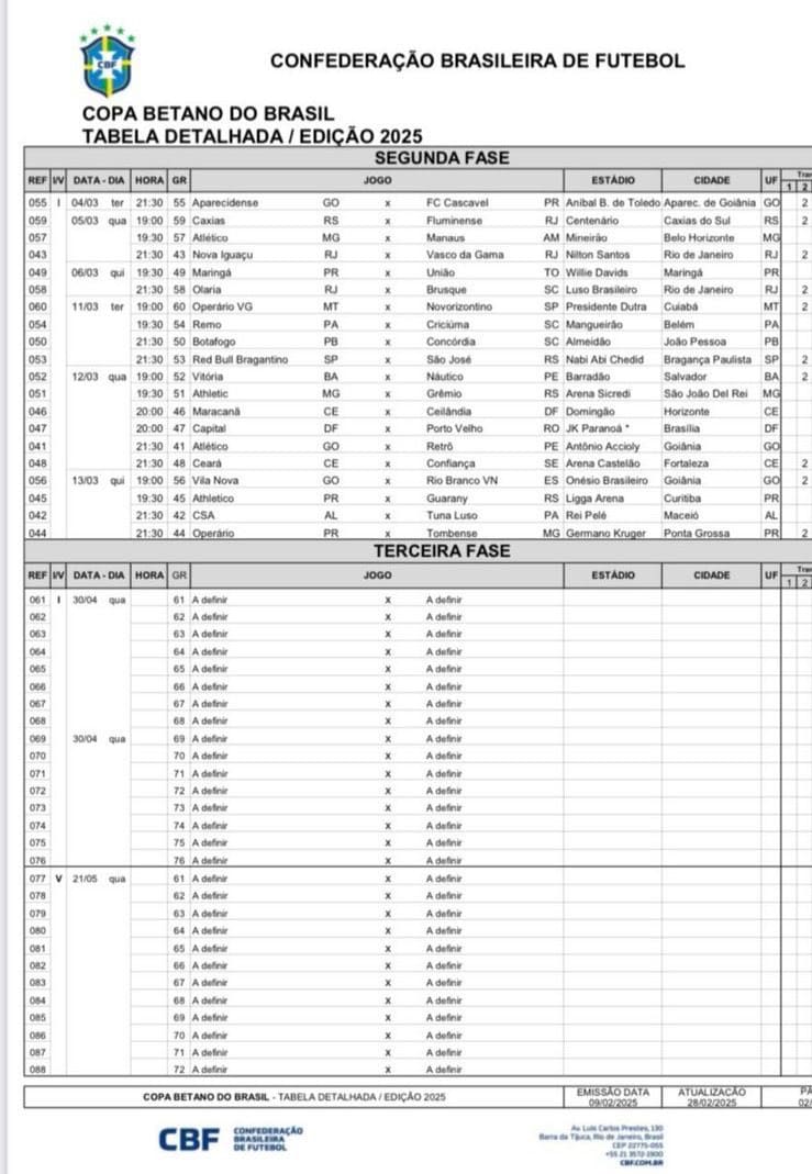 MeuVasco›Últimas notícias›Nova Iguaçu x Vasco: jogo da 2ª fase da Copa… Nova Iguaçu x Vasco: jogo da 2ª fase da Copa do Brasil acontece nesta quarta-feira às 21h30 no Engenhão sexta-feira, 28/02/2025 às 16:31 • Deixe um comentário Mídia Vascaína @midiavascaina 🏟️💢| DATA E HORÁRIO O duelo entre Nova Iguaçu e Vasco, válido pela 2ª fase da Copa do Brasil, já possui todos os detalhes estabelecidos: 🏟️ Estádio Nilton Santos 🗓️ 05/03 – Quarta-Feira ⏰ 21h30 Fonte: X Mídia Vascaína Receba notícias do Vasco Cadastre seu e-mail para receber os principais destaques do Vasco. Seu e-mail Quero receber Você pode cancelar a inscrição quando quiser. Tags #Copa do Brasil #Meuvasco #Notícias #Nova Iguaçu #Vasco