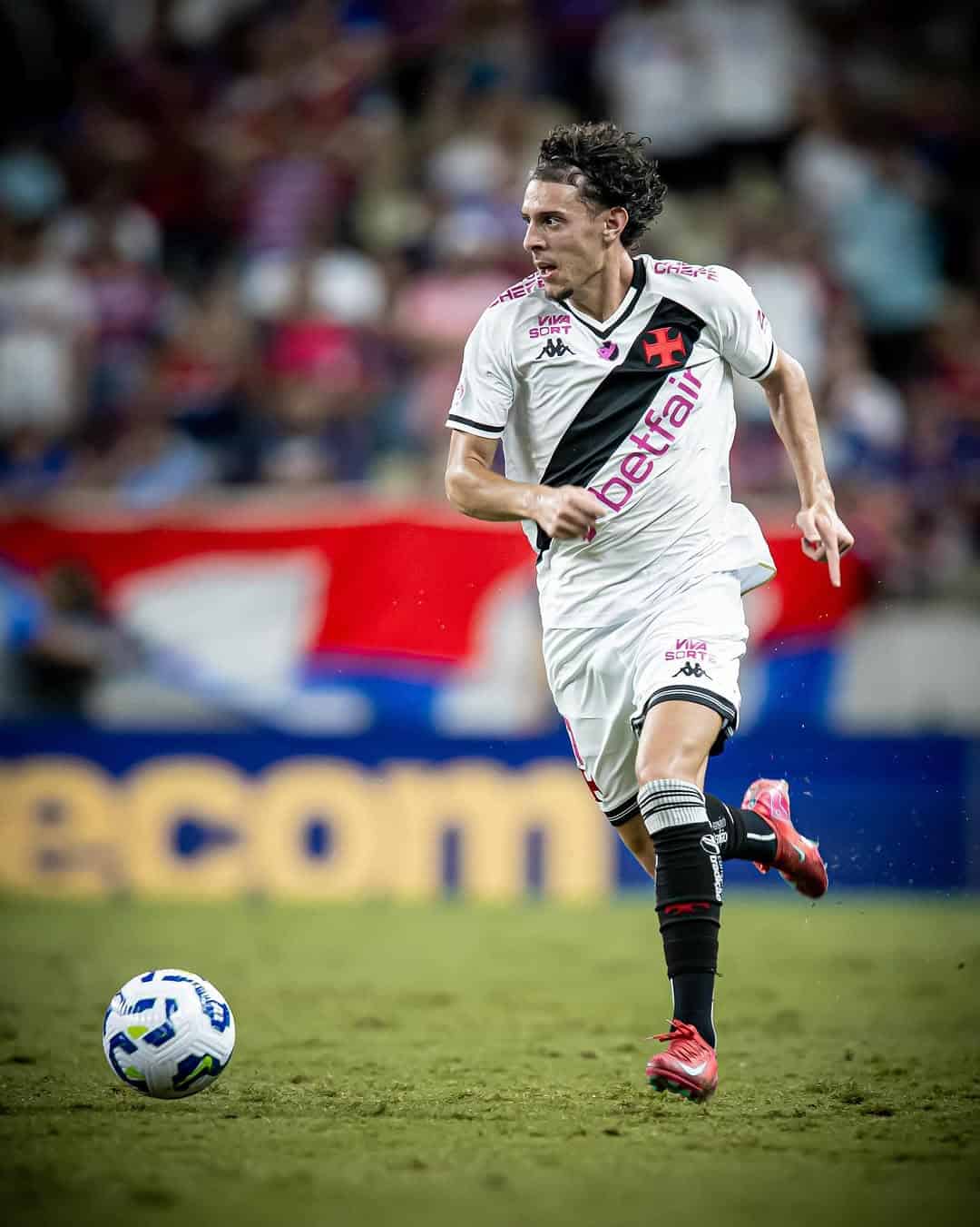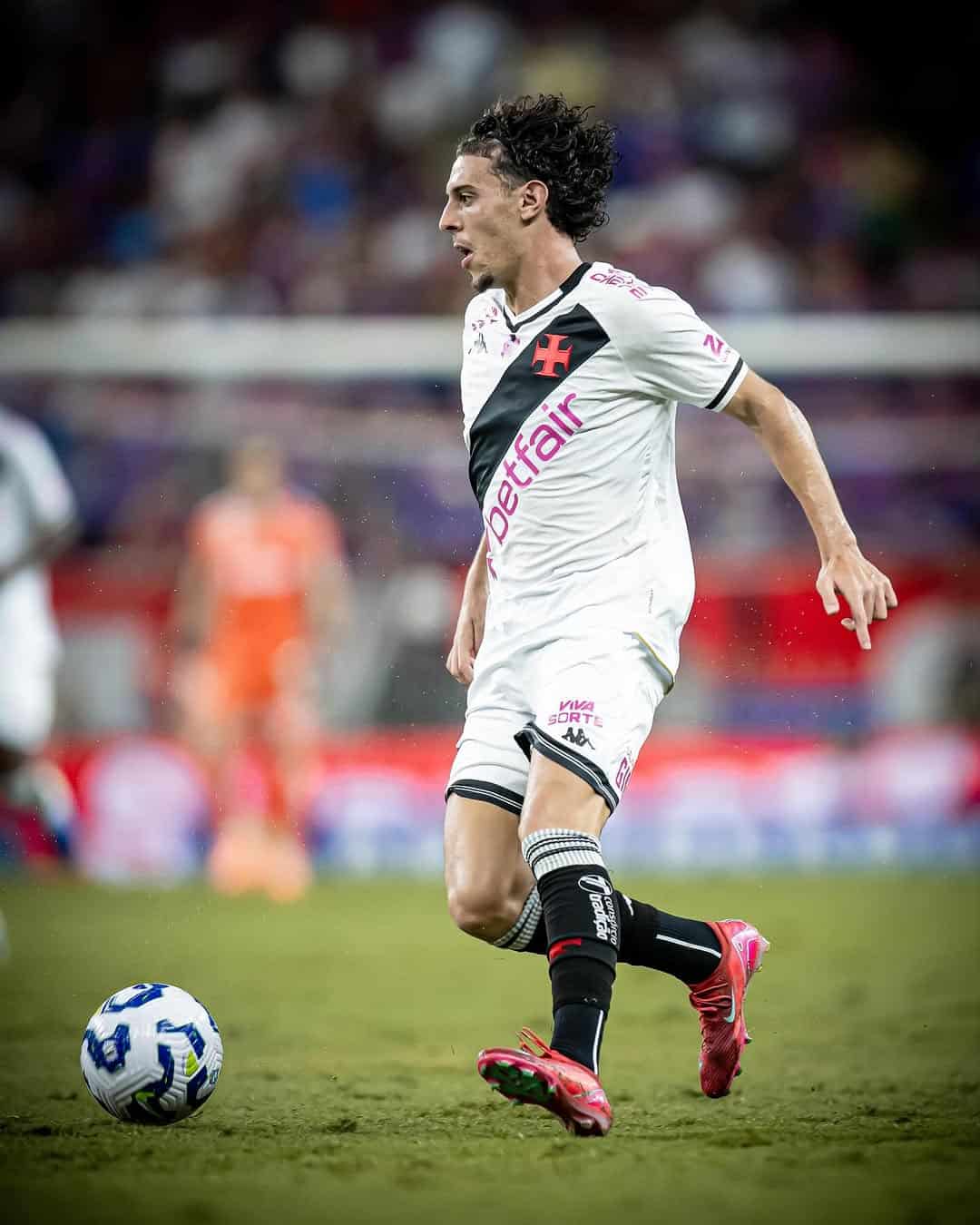 Vasco da Gama em campo, jogador com cabelo cacheado center.