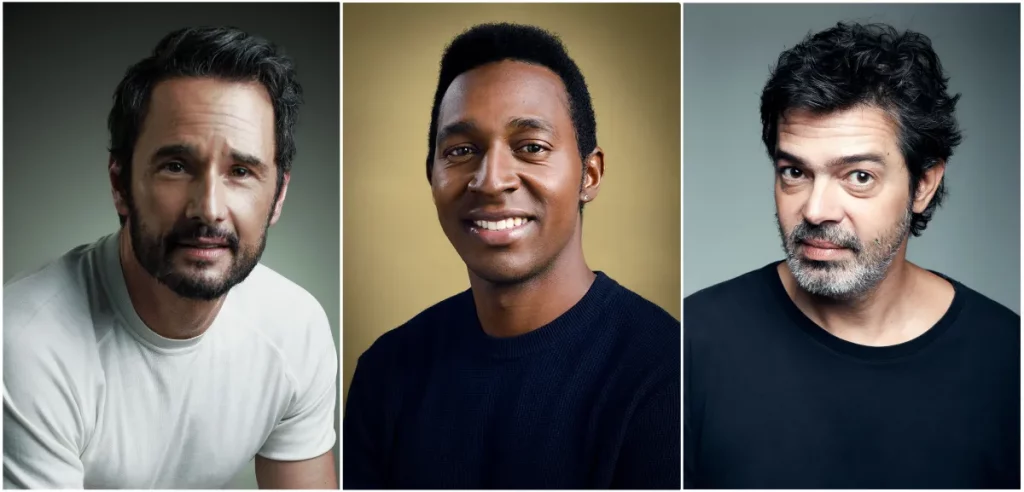 Rodrigo Santoro (João Saldanha), Lucas Agrícola (Pelé) e Bruno Mazzeo (Zagallo) – Foto: Julia Mataruna, Ana Pazian e Fernando Young