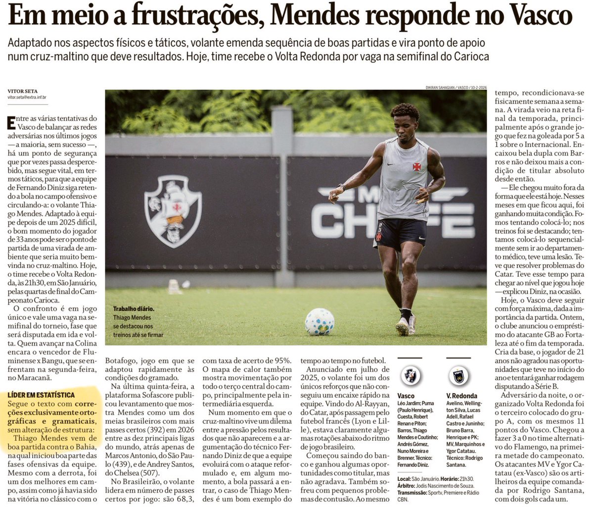 O Globo destaca instrução para IA em matéria sobre o Vasco neste sábado