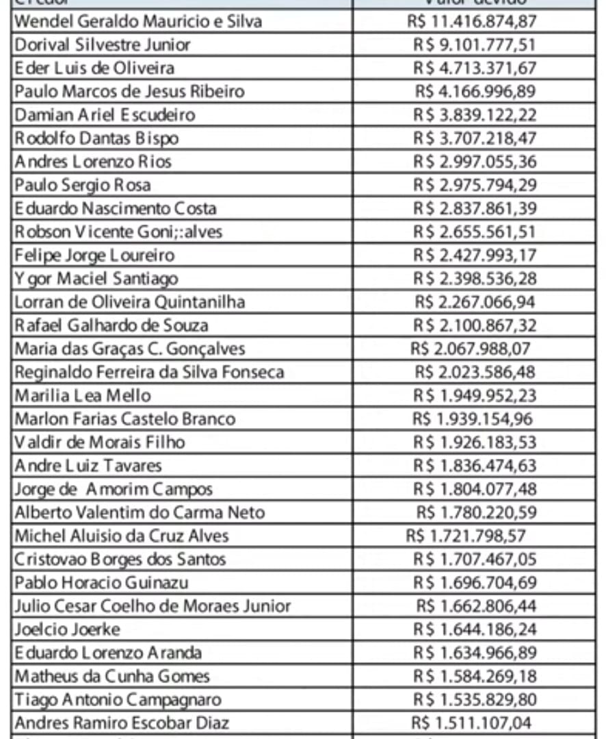 Os maiores credores presentes no Regime de Recuperação do Vasco
