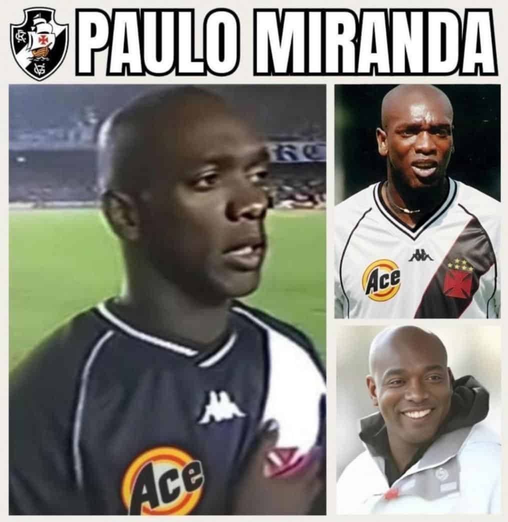 Confirmado no texto: O ex-jogador Paulo Miranda, conhecido por sua passagem no Vasco, está completando 52 anos. Ele atuou pelo clube entre 1999 e 2001, com um total de 170 jogos e 8 gols marcados.