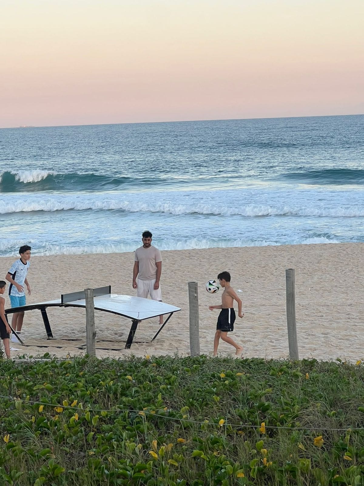 O jogador Payet desfrutou do dia para aproveitar a praia do Recreio na companhia das crianças!