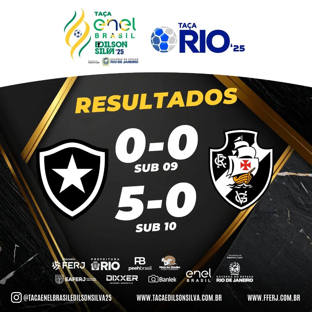 Resultado de amistoso entre Botafogo e Vasco, empates no Sub-09 e vitória do Vasco no Sub-10.