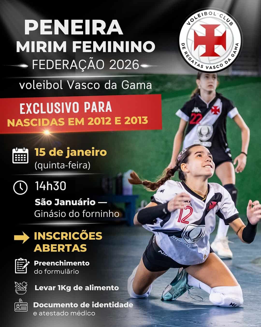 O evento acontecerá no dia 15 de janeiro de 2026, quinta-feira, às 14h30min, no ginásio Forninho em São Januário.