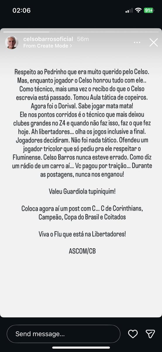 O Vasco continua a ser um tema de discussão, mesmo para aqueles que afirmam que o clube não tem importância. Recentemente, o perfil do falecido Celso Barros no Instagram, ex-dirigente do Fluminense e candidato à presidência do clube, fez críticas direcionadas a Pedrinho e Fernando Diniz, provando que a rivalidade ainda está presente.