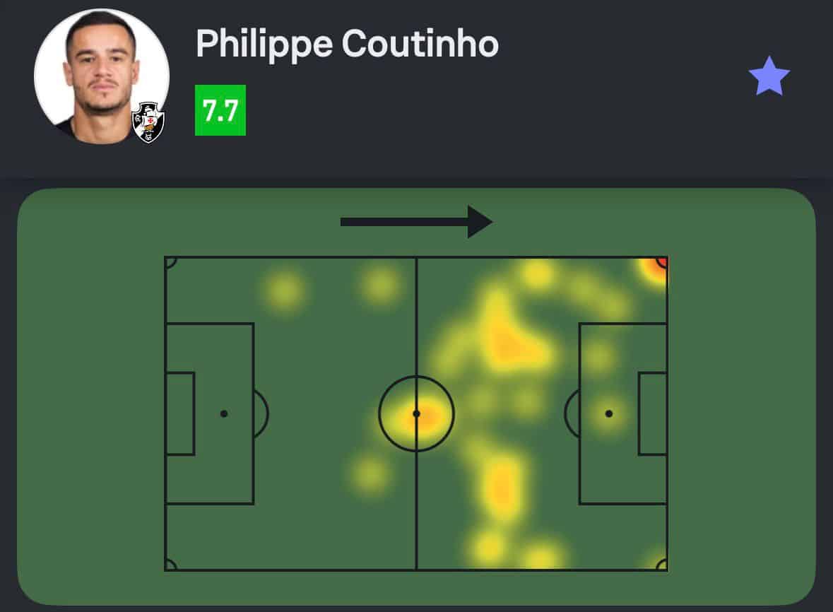 Philippe Coutinho obteve a segunda maior nota na partida entre Vasco e Botafogo, que terminou com a vitória do Vasco por 2 a 0.