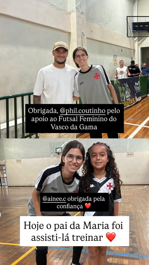 Philippe Coutinho atraiu atenção ao acompanhar treino de futsal de base do Vasco, onde sua filha Maria participa.