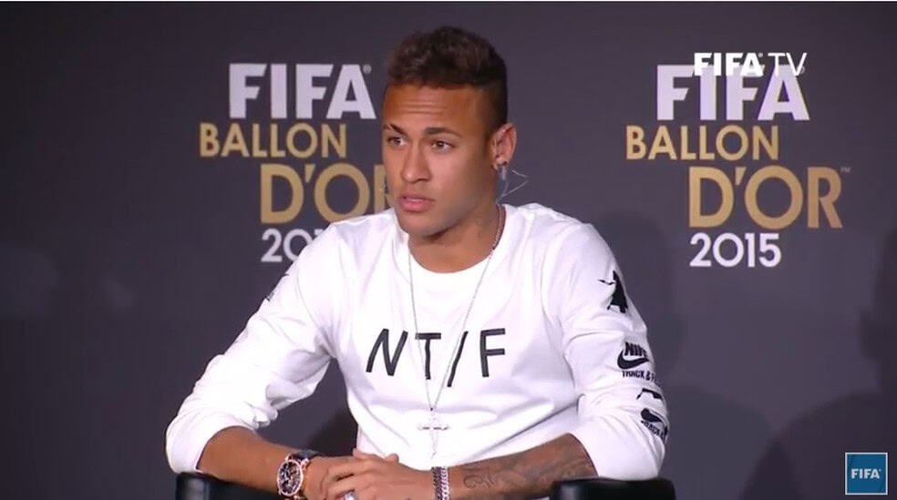 Neymar durante coletiva da Bola de Ouro — Foto: Reprodução