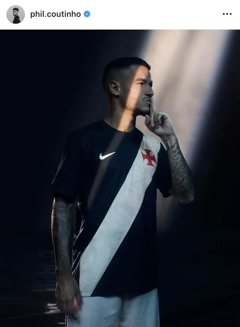 Philippe Coutinho posa com a camisa recém-lançada do Vasco, desenvolvida pela Nike; confira a imagem.