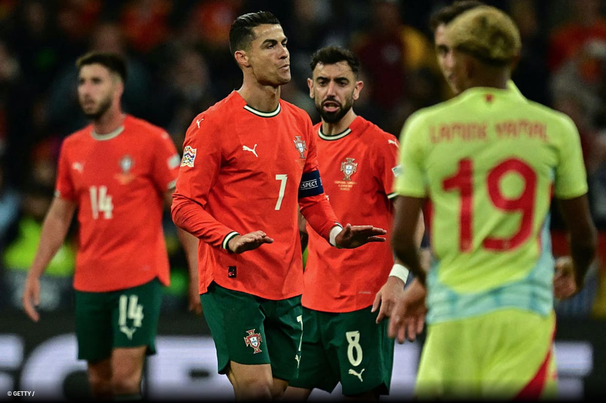 O segundo tempo começou com um gol anulado de Bruno Fernandes, devido ao impedimento de Pedro Neto. Portugal tentava se restabelecer, enquanto a Espanha sustentava a posse de bola para controlar o jogo. E foi assim até que, aos 15 minutos, Nuno Mendes recebeu na esquerda, deixou Yamal e a cobertura para trás e cruzou para Cristiano Ronaldo, que marcou e trouxe a história do jogo de volta ao craque português.