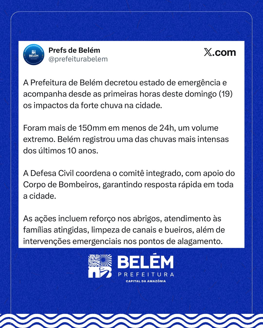 Fonte: Instagram Prefeitura de Belém
