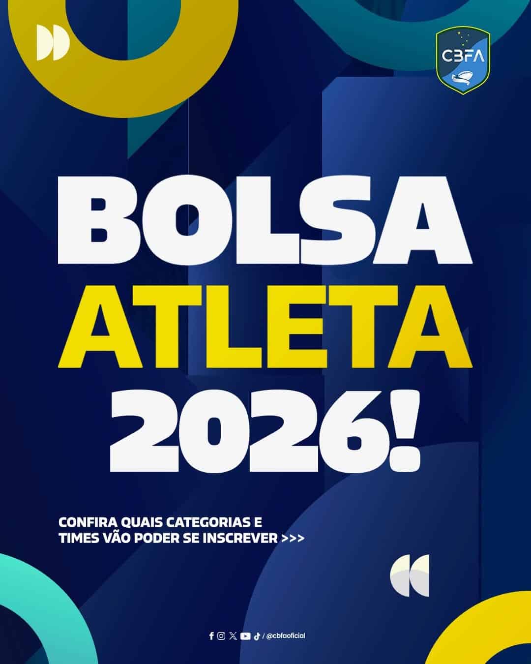 A CBFA tem o orgulho de anunciar que, em 2026, o Campeonato Brasileiro de Flag Football passa a integrar oficialmente o Programa Bolsa Atleta do Ministério do Esporte. Este é um passo significativo para fortalecer a modalidade neste início de ciclo olímpico e oferecer ainda mais suporte aos atletas.