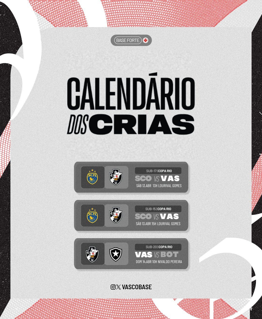 ➡️ No sábado, as equipes Sub-17 e Sub-15 vão enfrentar o Sampaio Corrêa na 6ª rodada da Copa Rio, fora de casa.