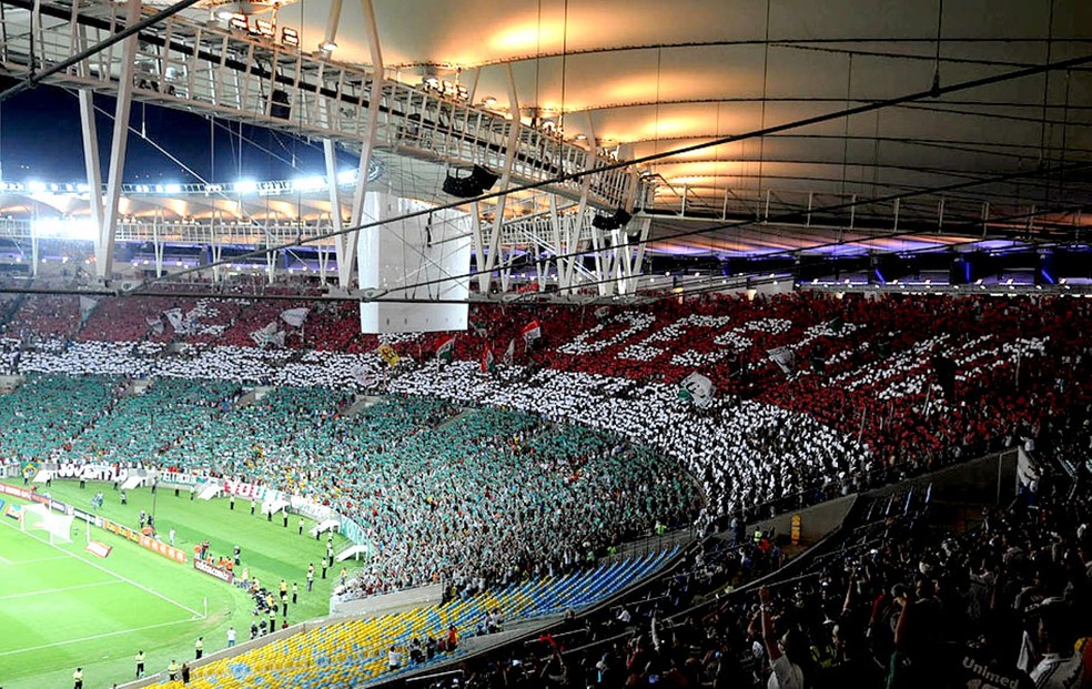 Mosaico ‘É o destino’, da torcida do Fluminense, em provocação ao Vasco, em clássico no Maracanã em 2013 — Foto: André Durão