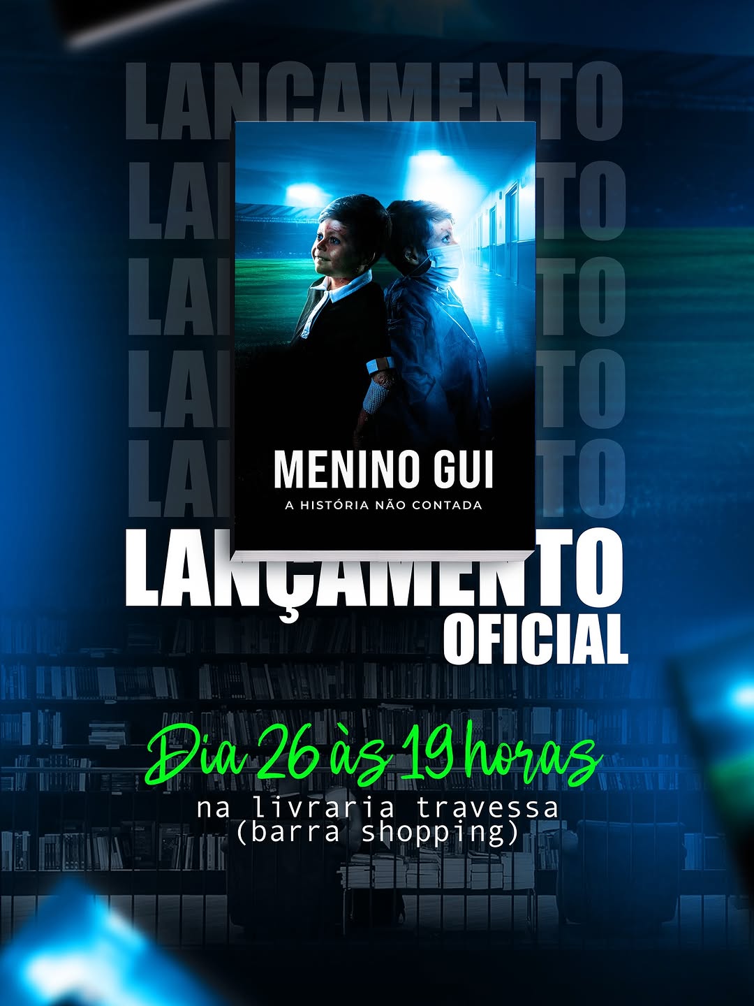 No dia 26, às 19h, vamos nos reunir para o lançamento oficial do livro “Menino Gui – A História Não Contada” na Livraria Travessa, localizada no Barra Shopping.
