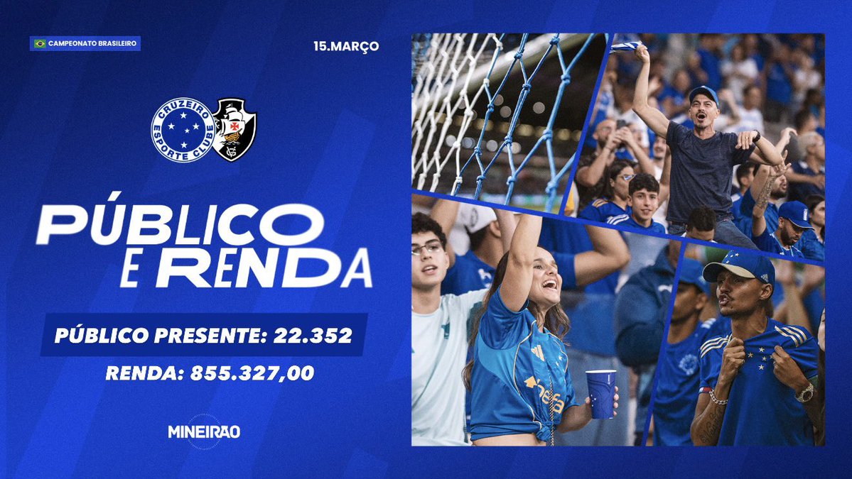 Cruzeiro e Vasco jogaram no Mineirão com a presença de 22.352 torcedores.