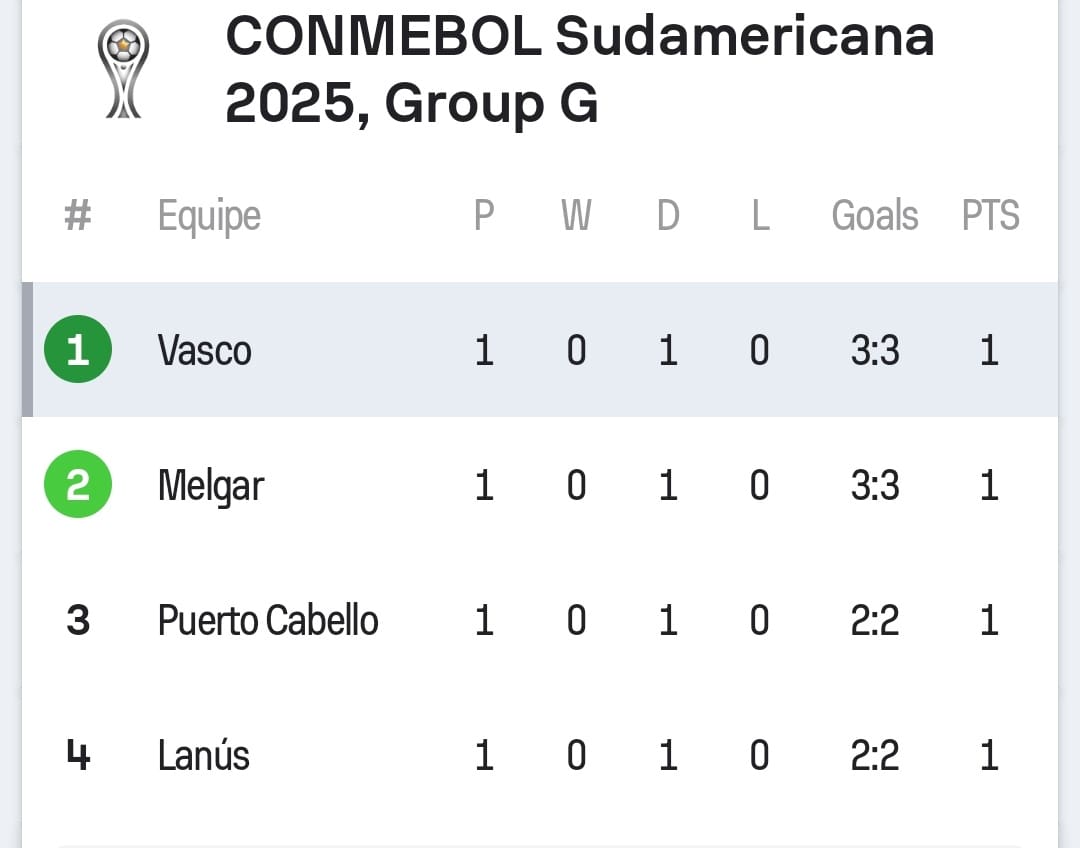 No duelo realizado na Venezuela, Puerto Cabello e Lanús ficaram no 2 a 2, fazendo com que todos os times do grupo agora contassem com 1 ponto.