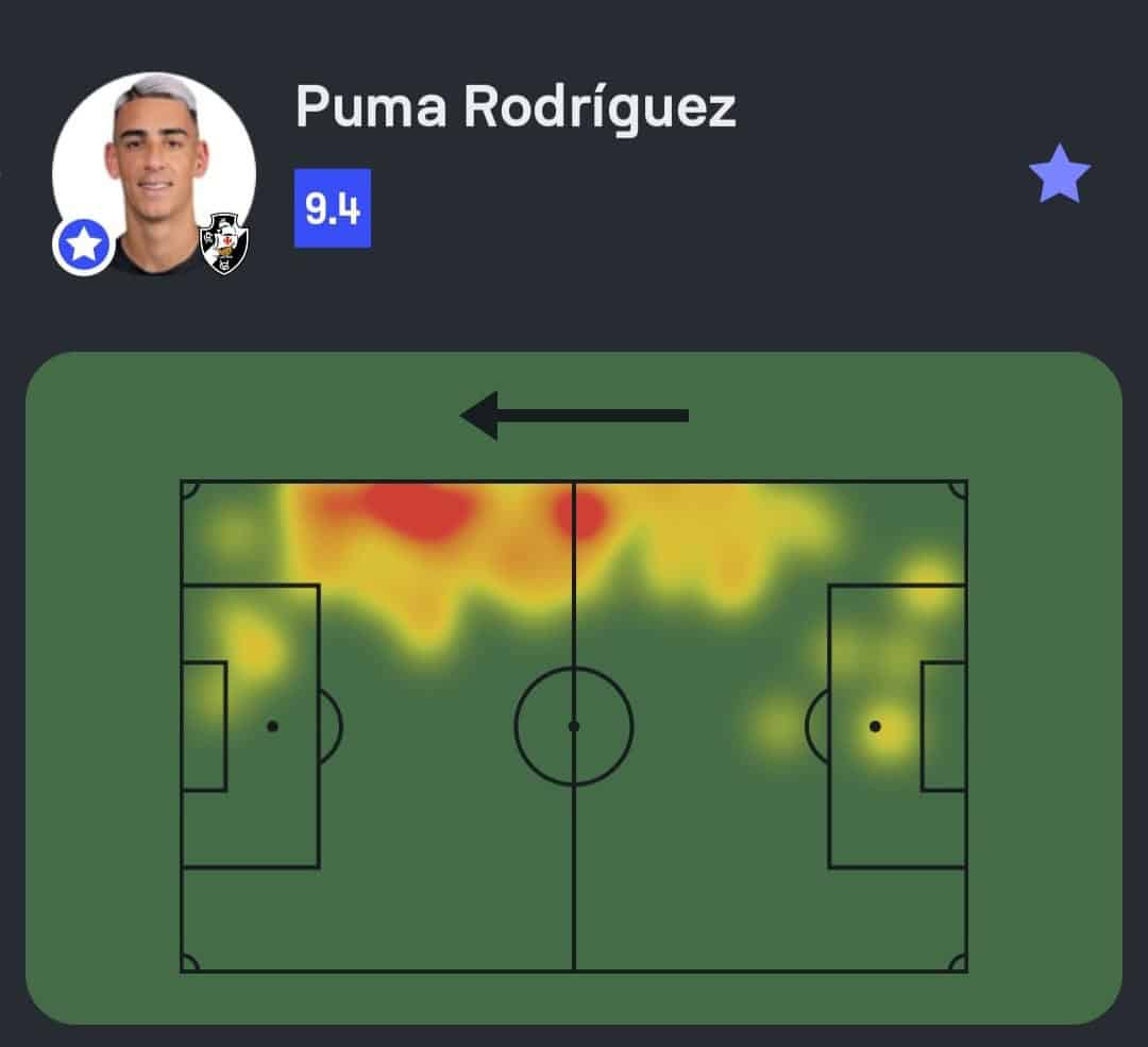 Puma Rodríguez foi destacado como o melhor jogador na partida entre Boavista e Vasco, que terminou com a vitória do time carioca por 3 a 0. O atleta teve um desempenho notável, marcando dois gols e contribuindo com dois passes decisivos. Além disso, ele completou 47 de 52 passes, alcançando uma precisão de 90%. Rodríguez também se destacou em finalizações, com quatro tentativas, sendo três delas no alvo, e venceu todos os três duelos aéreos que disputou. Seus cruzamentos também foram eficazes, com três acertos em cinco tentativas. Sua nota final no Sofascore foi de 9.4, refletindo sua performance excepcional em campo.