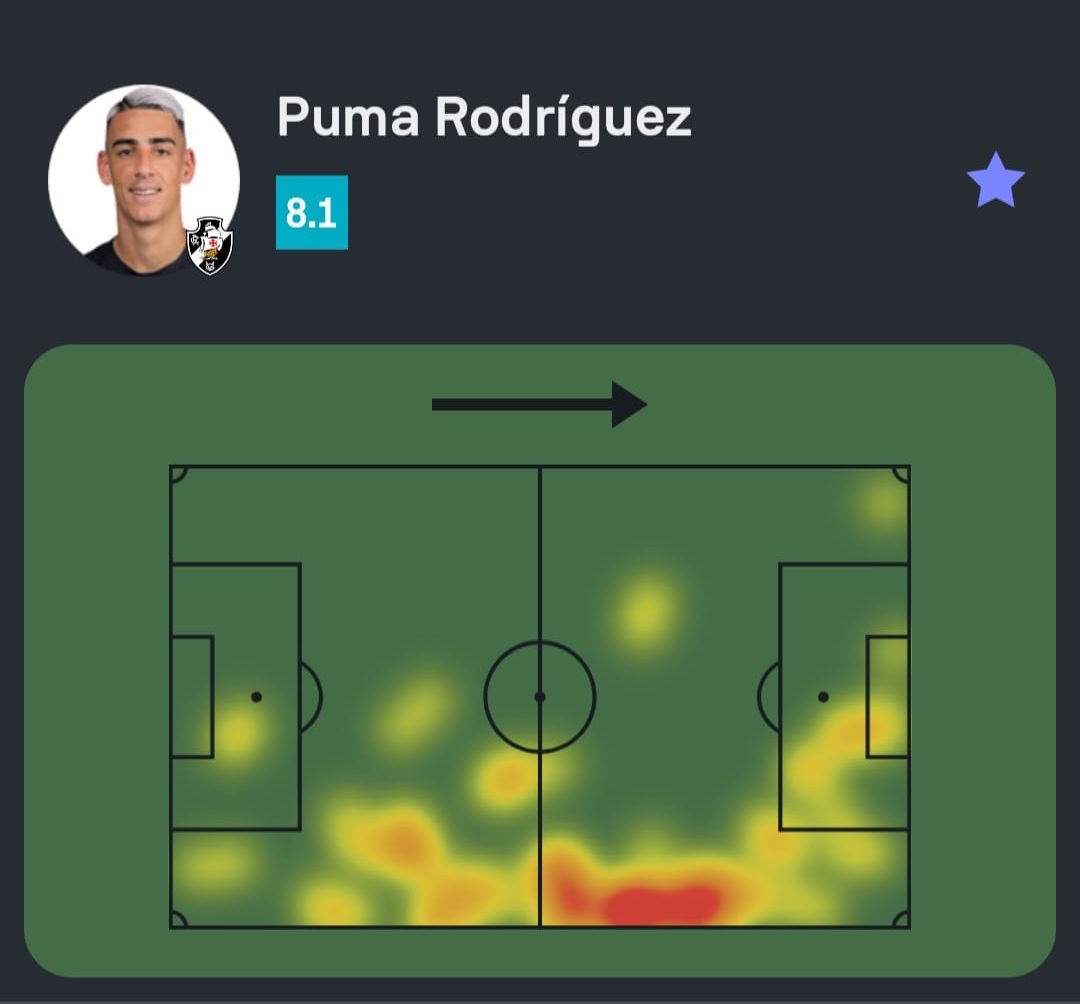 Puma Rodríguez destacou-se na partida entre Vasco e Chapecoense, que terminou em 1 a 1, alcançando a segunda maior nota do time.