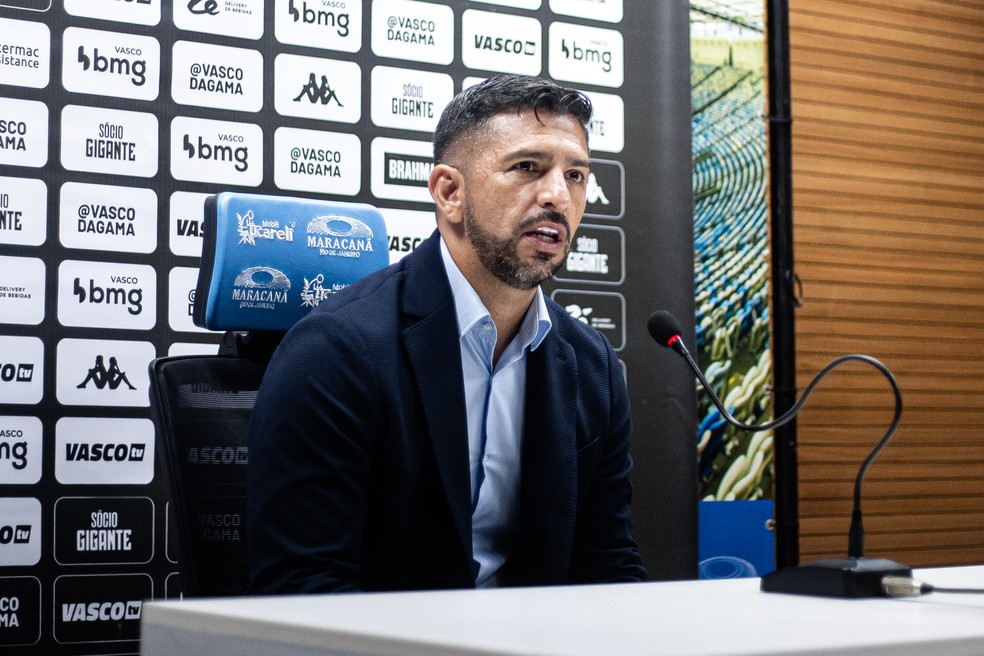 Emiliano Díaz em entrevista coletiva após Vasco x Flamengo — Foto: Leandro Amorim/Vasco