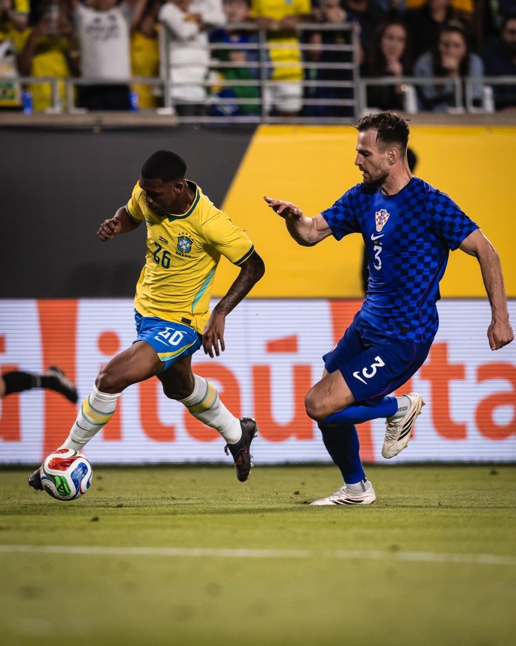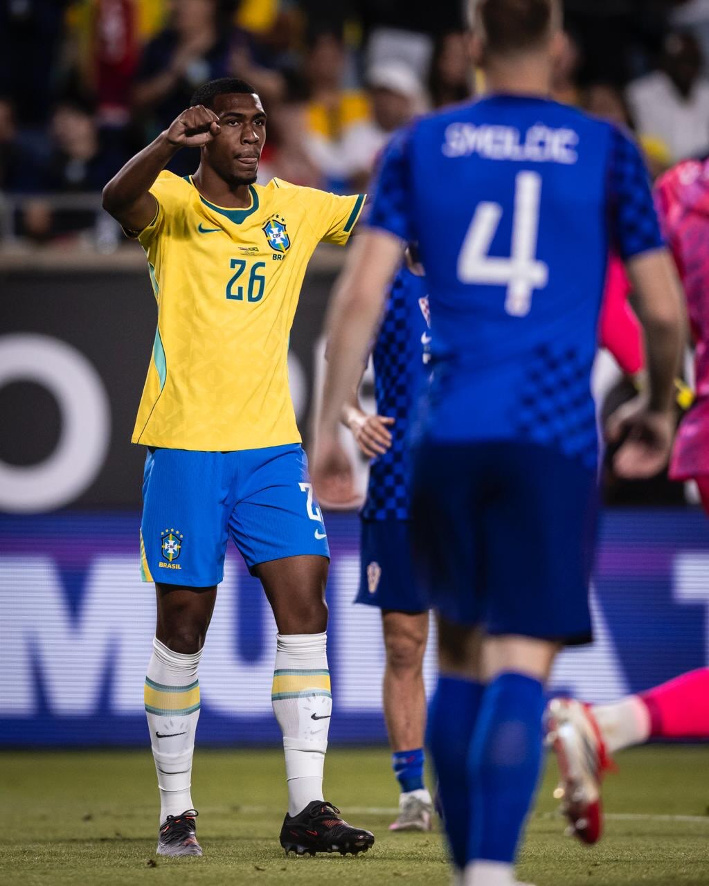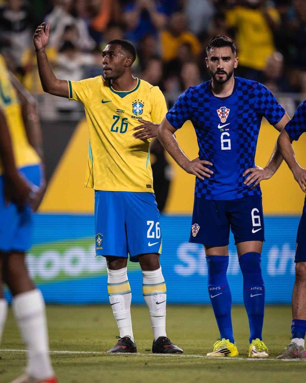 Rayan compartilha fotos comemorando sua participação no amistoso entre Brasil e Croácia, onde o Brasil venceu por 3 a 1.